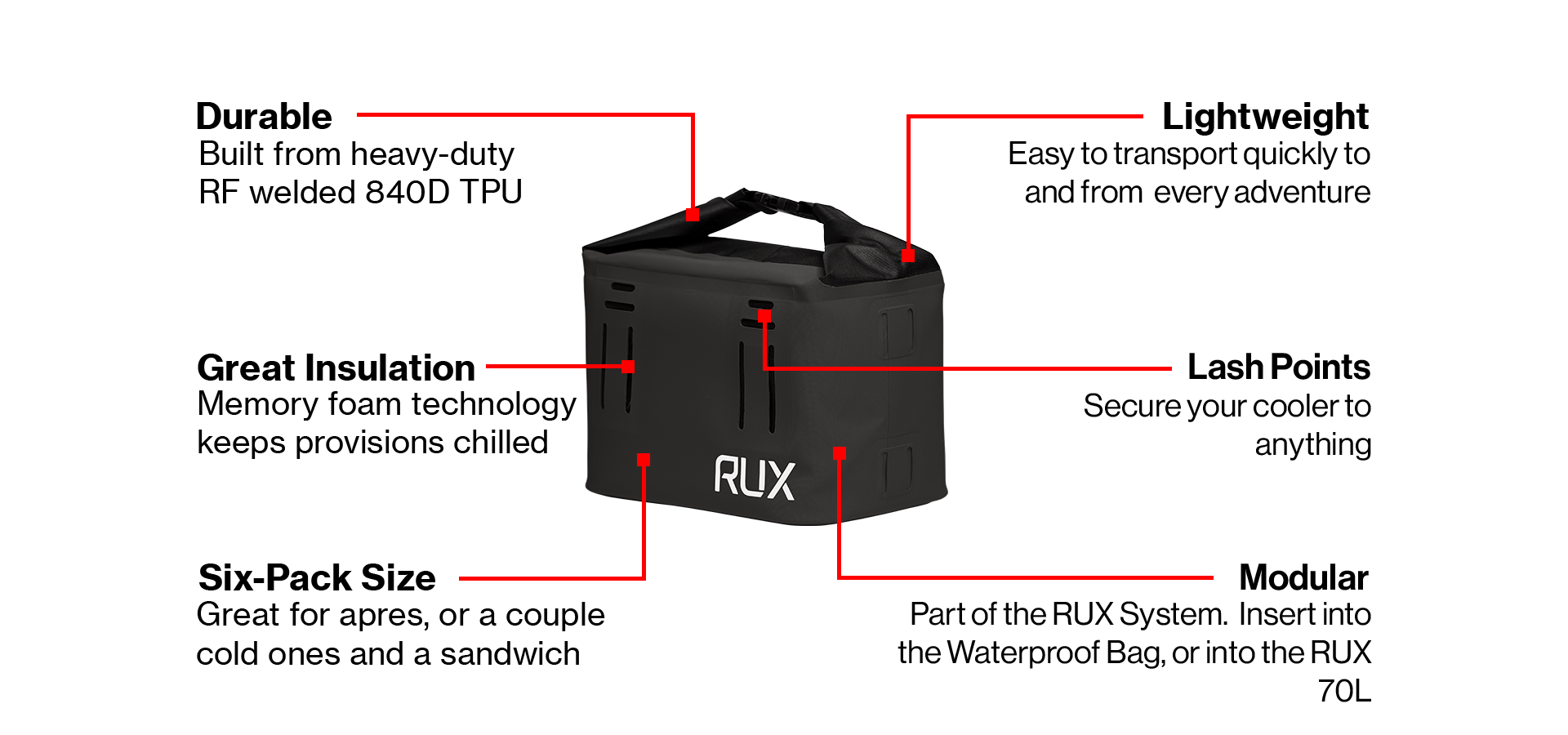 Idéal pour un pack de six après-ski. Ou quelques bières froides et un sandwich. Tant que vous avez besoin d'une boisson glacée, le RUX Cooler Cube est parfait pour vous.