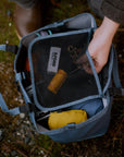 Mesh closure pocket for your keys, wallet and phone, 25L of room for your gear, and an internal auxilary pocket for that secret stash.