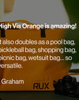 If you’d like to add a pocket, grab a RUX Pocket and easily secure to the exterior of your Waterproof Bag. When needed, you can detach your Pocket to use with other RUX products including the RUX 70L or RUX Soft Cooler Bag, or just take the Pocket on it’s own.