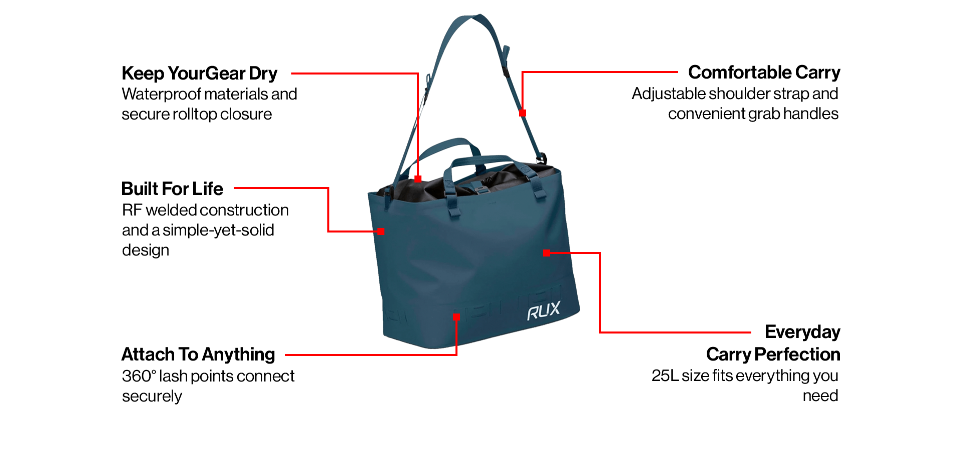 • 360-Degree Lashpoints: Tie it to boats, paddle boards, kayaks, racks or anything else!